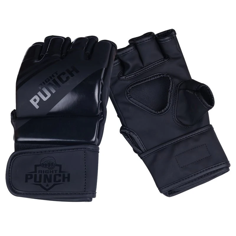 The RightPunch Black MMA Grappling Gloves are built for fighters who want maximum flexibility, comfort, and durability during training and sparring. Designed with premium synthetic leather, these gloves provide long-lasting performance while maintaining a sleek and professional look. The open-palm design enhances grip and control, making them ideal for grappling, clinch work, and striking practice. Multi-layer foam padding protects your knuckles and hands from impact, while the secure hook-and-loop strap ensures firm wrist support and a comfortable fit. Perfect for MMA, sparring, grappling, and bag training, these gloves combine strength and style in one essential piece of gear.