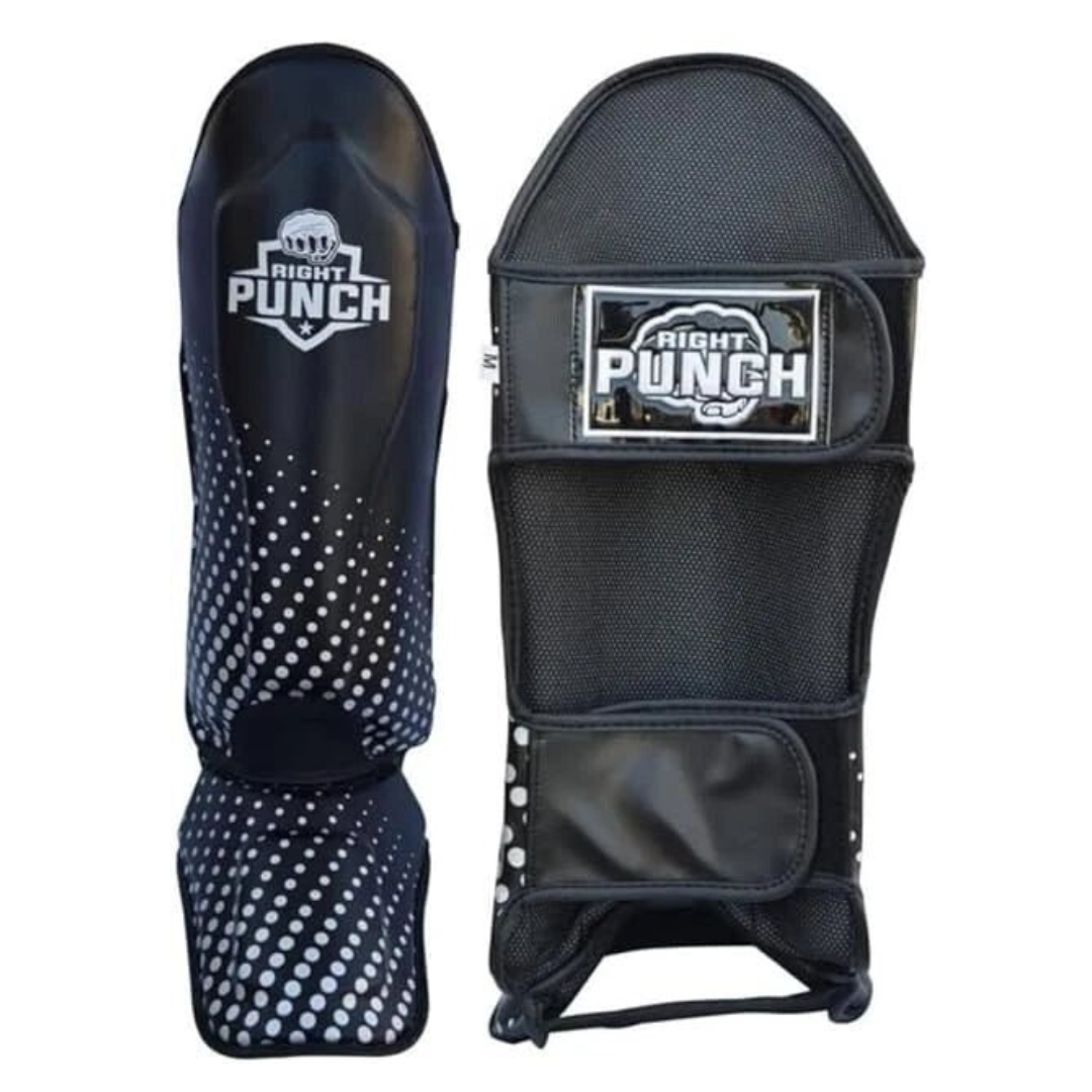 The RightPunch Black & Silver MMA Shin Guards are designed to deliver maximum protection, comfort, and durability for fighters during training and sparring. Made from high-quality synthetic leather, these shin guards are lightweight yet strong enough to withstand repeated kicks and impacts. The high-density foam padding provides excellent shock absorption to protect both your shins and your sparring partner. With adjustable hook-and-loop straps, they ensure a secure and comfortable fit, preventing slipping during intense movements. The contoured design follows the natural shape of the leg, allowing flexibility and freedom of movement. The bold red finish with RightPunch branding makes these shin guards both functional and stylish, perfect for MMA, Muay Thai, kickboxing, and other combat sports.