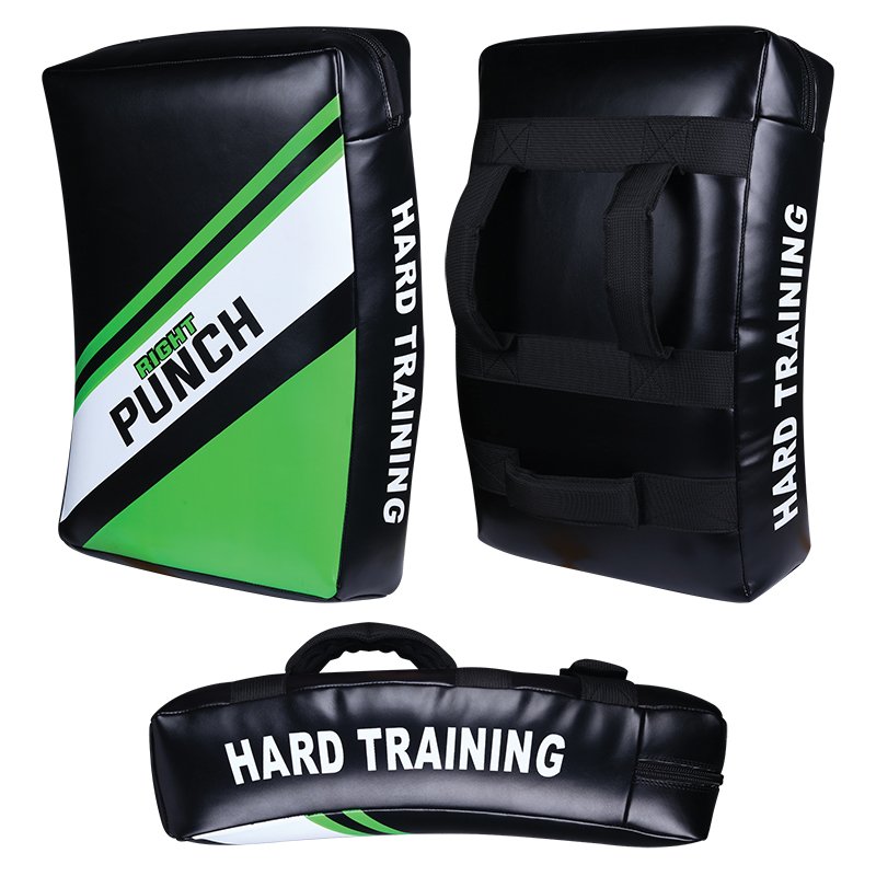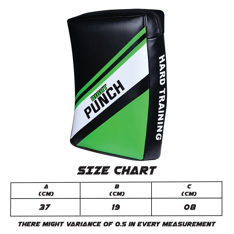 The RightPunch MMA Curved Kick Shield in green is built to handle the toughest strikes during training, making it an essential tool for martial arts, MMA, and kickboxing. Constructed from durable synthetic leather with reinforced stitching, this shield is designed to withstand heavy kicks, punches, and knee strikes. Its thick, multi-layered foam padding effectively absorbs impact, keeping trainers safe while helping athletes develop power and precision. The curved shape allows better control and strike accuracy, while the strong handles on the back provide a firm grip and versatile training angles. Ideal for building strength, speed, and technique, this kick shield combines durability, comfort, and protection.