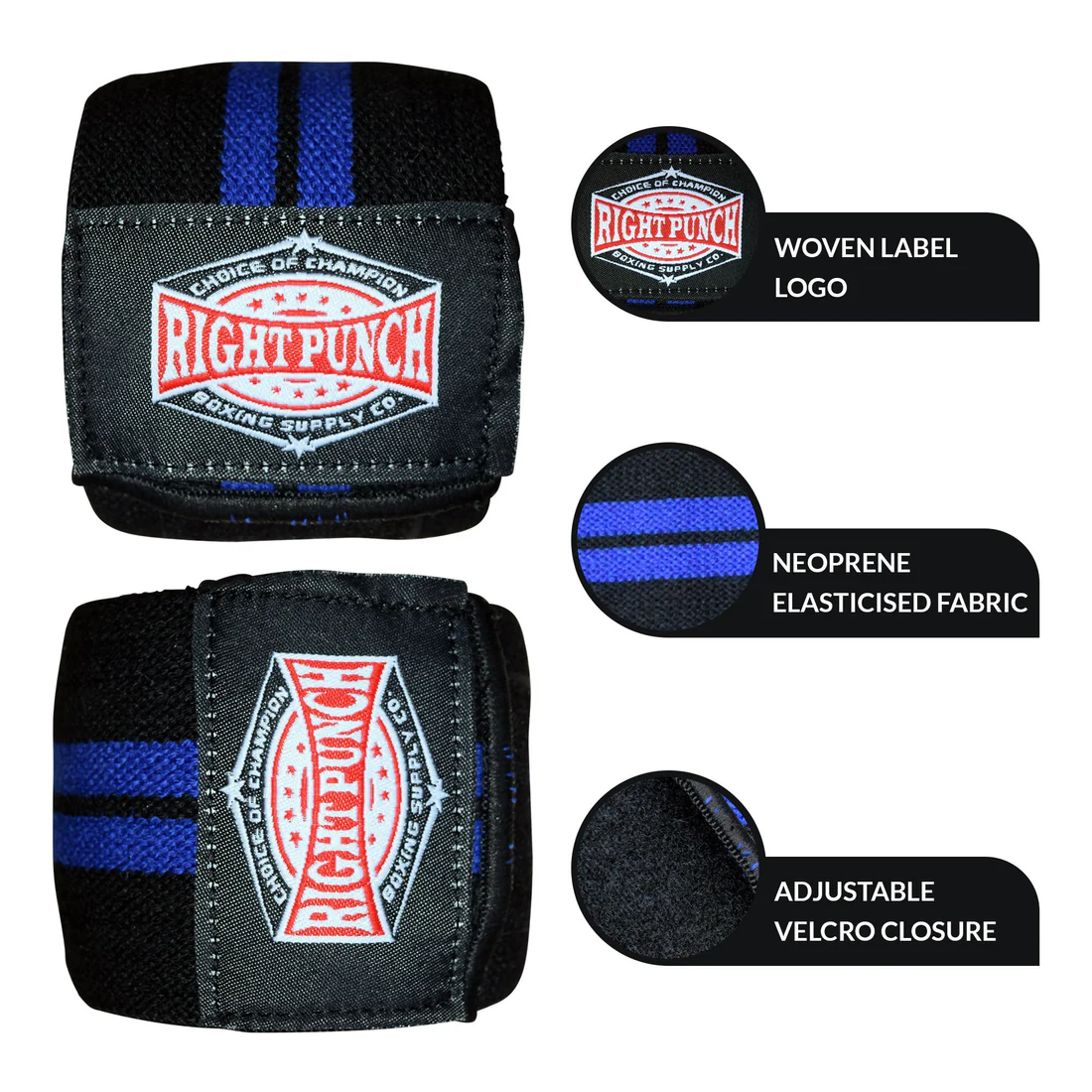 Right Punch Sports Weightlifting Knee Wraps – Adjustable Velcro Closure for Maximum Support